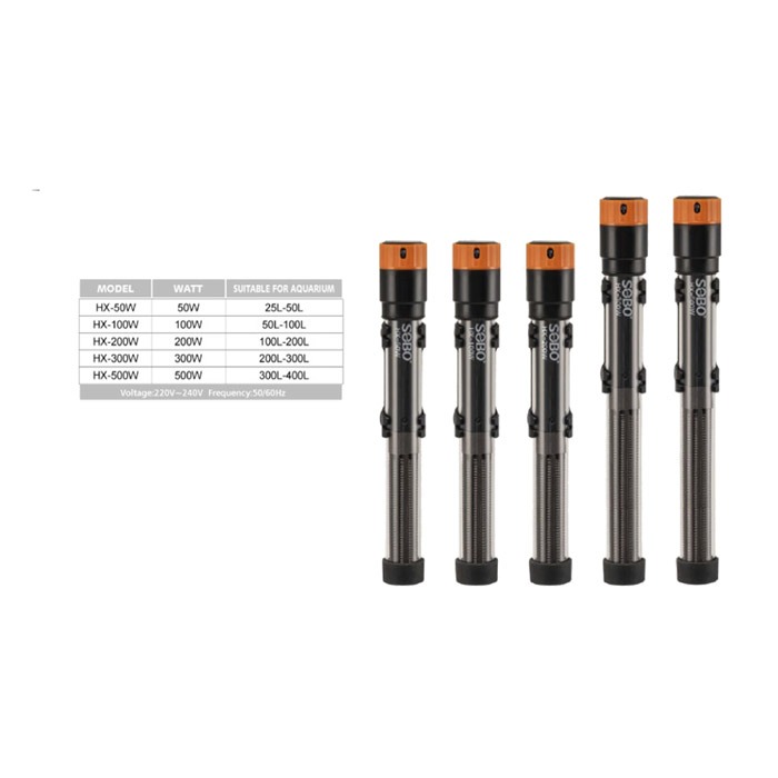 بخاری HX-500W سوبو سوبو از ضروریترین تجهیزات آکواریوم است که به حفظ تعادل دمایی آب کمک شایانی میکند. از آنجا که تغییرات ناگهانی و مستمر دمایی علاوه بر ایجاد شوک به آبزیان زمینه ایجاد بیماری ها را نیز ایجاد میکند استفاده از بخاری آکواریوم امری اجتناب ناپذیر میباشد.